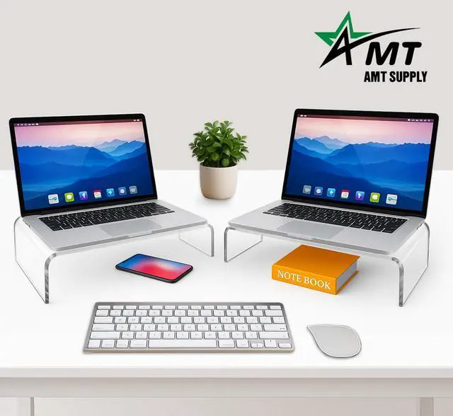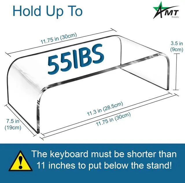 HEAVY-DUTY: AMT Acrylic Monitor Stand is made from Class-A Acrylic which is way more sturdier than wood and lighter than glass monitor stands (easy out of shape). Great confidence to support various heavy gadgets up to 50 Ib such as a TV riser for your new screen, monitor, a printer stand for shelf space and a desktop shelf for book & accessories.