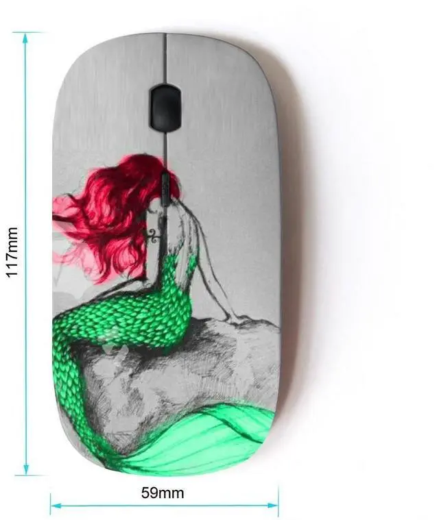 KawaiiMouse [ Optical 2.4G Wireless Mouse ] Mermaid Green Red Hair Tail Ocean Fairy Tale