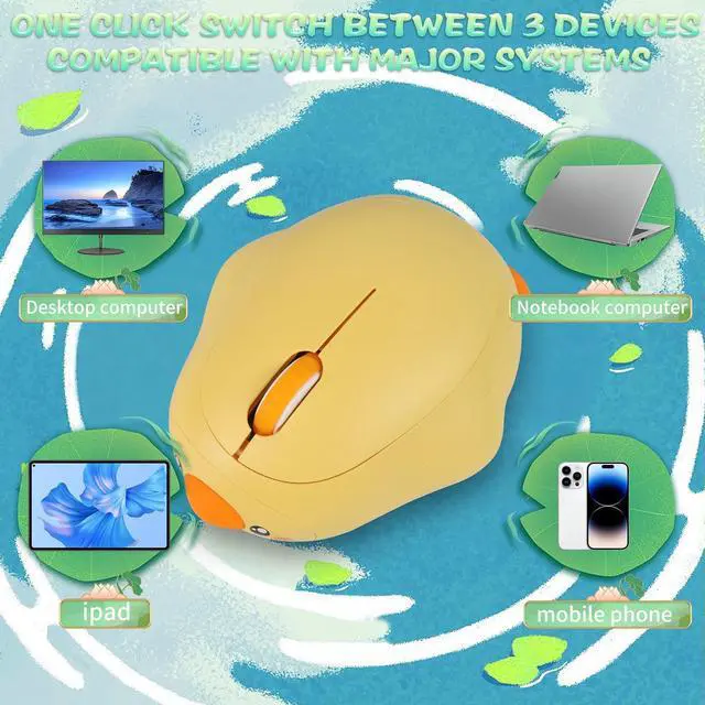 KUYHRF Cute Duck Bluetooth Wireless Mouse -Rechargeable,Dual Mode Connection, Silent Scroll Wheel, 1600 DPI - Perfect for Laptops, PCs, and Tablets (Yellow)