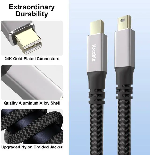 Mini DisplayPort to Mini DisplayPort CableSupports up to 4K (3860x2160) @60Hz. Backward compatible with 4K@30Hz, 2K, 1080P, 720P. Exquisite Craftsmanship100% pure copper core. 24K gold-plated connectors. shinning edge premium aluminum shells. multiple shielded and anti-rupture SR (strain relief). Dual color durable nylon jacket. Wide CompatibilityIdeal for laptop, tablet, monitor, projector, Surface Dock, TV. Compatible with MacBook Air, MacBook Pro, iMac, Mac Pro, Microsoft Surface Pro, Surface Studio 1 / Book 1 / Dock 1 and more devices with Mini DP interfaces.