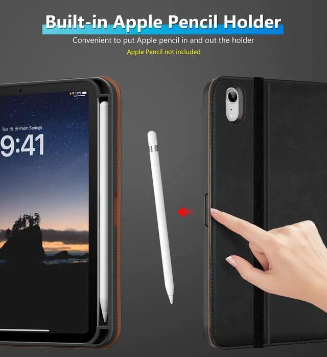 Inch (Model number: A2567/2568/2569). Not compatible with any other iPad model ^^ Internal embedded 360-degree rotating design, flexible rotation to any angle for comfortable watching movies or typing. Built-in leather hand strap (one-handed operation) ^^ Built-in pencil holder, Pencil holder securely carries and protects Apple Pencil wherever you go.