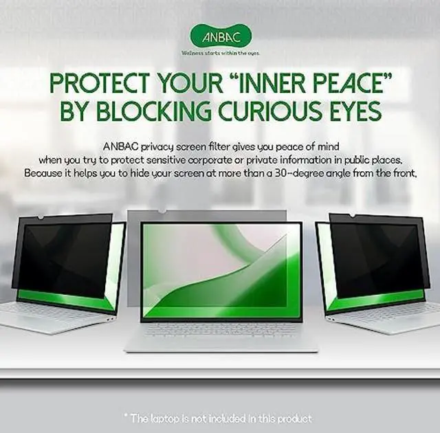 SMUDGE PROOF & DURABLE PRIVACY GUARD ANBAC attachment type privacy screen filter protects your screen from others view. The advanced micro-louvre technology of the filter enables you to see a clear screen at the front and limits your screens viewing angle beyond 30 degrees to the left and right from your center view. Plus, additional coatings prevent fingerprints and scratches on the screen. These coatings help keep the filter free of smudges, dents, and allow for long-term usage. ^^ FOR EYE HEALTH Protect your eyes from blue light, and other harmful rays! The privacy screen filter reduces blue light exposure from screen, and blocks harmful rays from sunlight reflection.