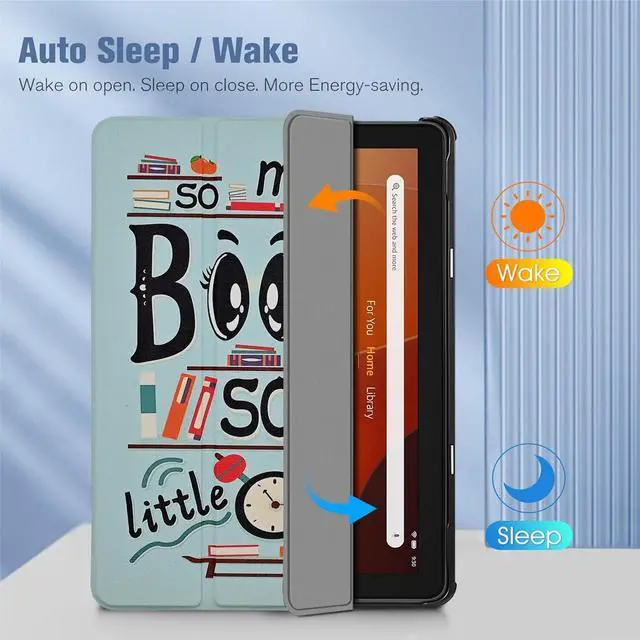 PLEASE NOTE: This case is designed for Kindle Fire 7 Tablet (12th Generation, 2022 Release). Protect your new Kindle with this Case at all times! The Case sports a simple and classy design. The back shell is made from durable polycarbonate material so you do not need to worry about any damages. It offers an easy clip-on application. Because the cover is uniquely designed to flip back and transform the case into a comfortable viewing stand that offers two different viewing angles, this capability allows the viewer to use the new Kindle hands-free whatever your position may be without strain whether it is being used for viewing or for a keypad. All features of Kindle are accessible even with the case on. It even includes a camera hole so you can take pictures and videos without removing it. Watch movies and listen to music clearly with speaker holes!