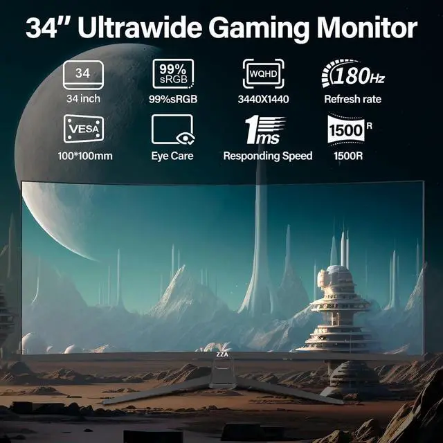 Immersive 34 inch ultrawide monitor 4K3440*1440 Full HD Curved Gaming Monitor with Thin Bezels for a Captivating Gaming Experience ^^ Gaming monitor enjoy Tear-Free Gaming with FreeSync Premium Technology for Eliminating Tearing, Stuttering, and Ghosting ^^ 34 inch ultrawide curved monitor 1ms