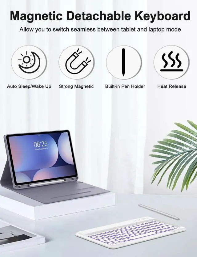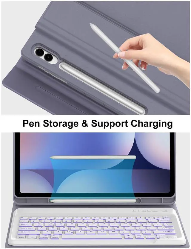 Easy of Use / Galaxy 12.4 inch Tab KeyboardTransform your tablet into a powerful productivity tool with our tablet keyboard case for samsung galaxy. This teclado galaxy tab s10plus offers a seamless typing experience. Keyboard FunctionallyMagnetically detachable super slim 5mm and light weight bluetooth keyboard with 10M range. And the book cover keyboard tab s9 fe + with strong magnetic keyboard gives you a stable platform for typing that won't move easily. Stylus Pen HolderThis touch keypad for galaxy case is designed with pen holder, grab your pencil effortlessly whenever you want, easily to carry your pencil with your device.