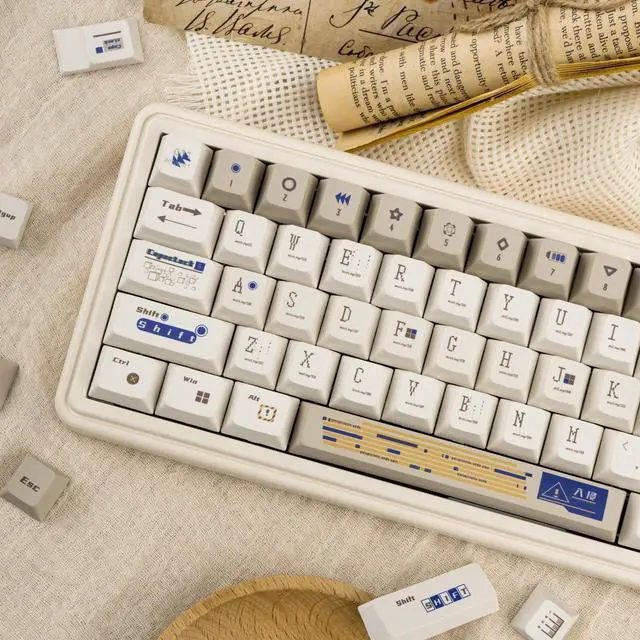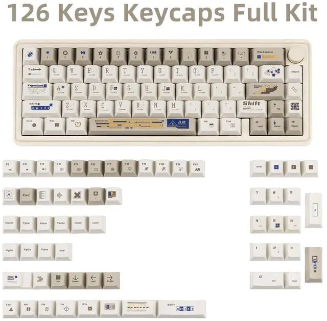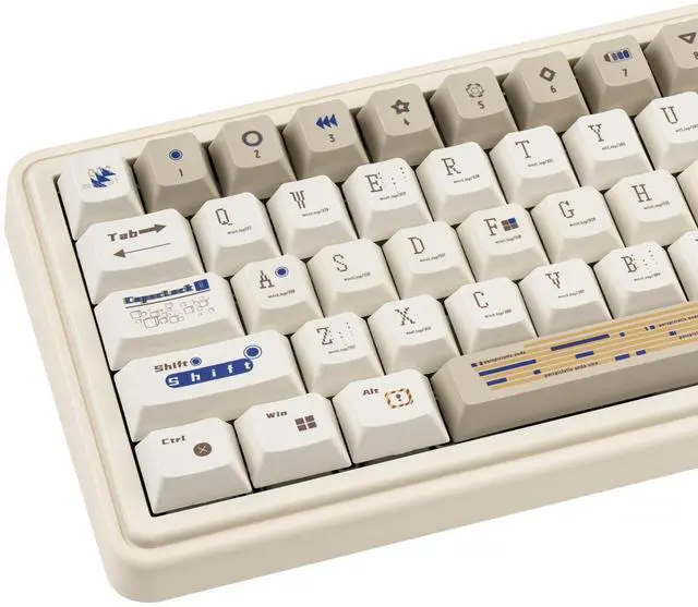Retro Keycaps: Brown and white keycaps look very retro with a design theme of unknown code, upgrade the look of your keyboard with this set of retro white keycaps for a more personalised look.