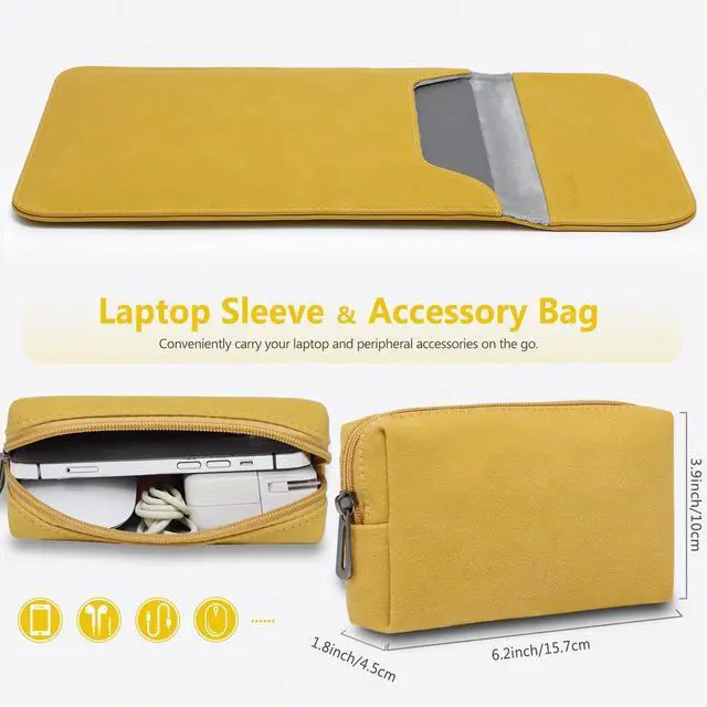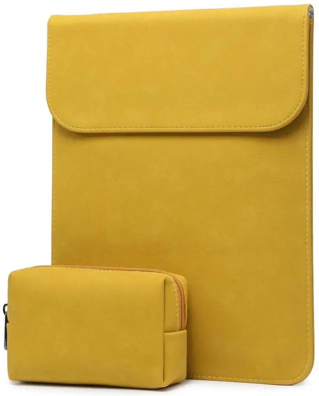 Internal Dimensions: 12" x 8.66". Perfectly fits MacBook Air 13 M4 M3 M2 M1 2025-2018(M4/A3240, M3/A3113, M2/A2681, M1/A2337, A2179, A1932), MacBook Pro 13 M2/M1 Pro/Max 2025-2016(M2 & M1/A2338, A2289, A2251, A2159, A1989, A1706, A1708); Also fits 13" iPad Pro M4 & iPad Air M3/M2 2025-2024, iPad Pro 12.9 2022-2018 (without Keyboard), Dell XPS 13, 13"/ 12.3" Surface Pro 11-3, 12.4" Surface Laptop Go, 13.9" Huawei MateBook X Pro, Huawei MateBook 13s, 13.3" Samsung Galaxy Book S/Flex/Ion, etc. ^^ Made of High-strength and durable Microfiber (Faux) Suede Leather, water-resistance, and anti-scratch. Soft velvet lining protects your laptop from scratches when you take it out or put it in the sleeve ^^ Invisible magnets closure, allows you to easily access your laptop, while your laptop will not be damaged by the magnets ^^ Come with a practical and stylish pouch for accessories such as charger, mouse, earphone or other peripherals, it can also be used as a cosmetic pouch, etc. ^^ Compact and slim design allows this sleeve to be carried solo or fit in your briefcase or backpack, lightweight yet durable