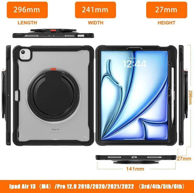 Compatible Model: This case is specifically designed for iPad Air 13 inch M3 2025 (A3268/ A3269/ A3271), iPad Air 13 inch Case M2 2024 (A2898/A2899/A2900), iPad Pro 12.9 inch 6th Generation 2022 / iPad Pro 12.9 inch 5th Generation 2021 (A2378/A2379/A2461/A2462) / iPad Pro 12.9 inch 4th Generation 2020 (A2229/A2069/A2232/A2233) / iPad Pro 12.9 inch 3rd Gen 2018 (A1876/A2014/A1895). It is important to verify your iPad model before purchasing. (Package NOT INCLUDE the pencil and screen protector) ^^ 360 Rotating