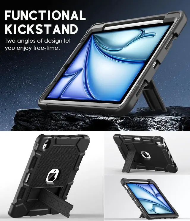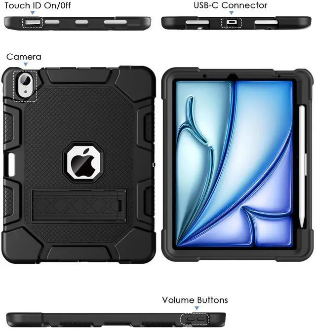 Release (Model number: A2316 A2324 A2325 A2072). [No Screen Protector] DO NOT fit other iPad ^^ [High-Quality Material] The case is made from high-grade thermoplastic polycarbonate and anti-skidding silicone, to create a perfect protection for your ipad. Not only shockproof/durable but also comfortable hand feeling ^^ [Built-in Kickstand] Functional pop out kickstand allows easy access to your favorite shows, movies, and games while on the go ^^ [Apple Pencil Holder] Built-in Apple Pencil holder for your iPad Air 11 and iPad Air 5/4, you can charge your Apple Pencil Pro & Apple Pencil 2nd in the pencil holder when youre not using it, and avoid the losing or breaking your pencil when youre walking or outdoor(Note: Apple Pencil NOT Included) ^^ [Precise Openings] Easy access to all the controls and features; Perfect cutouts for speakers, cameras, ports and buttons