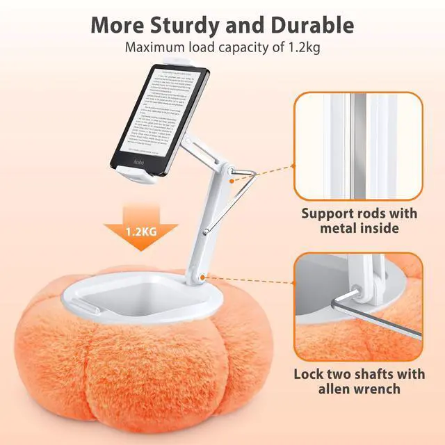 Creative Multi-functional Tablet Pillow Stand: The unique pumpkin-shaped design of the CreaDream iPad Pillow Stand is highly creative. It completely frees up your hands, making it easy to focus on reading, watching shows, or live streaming while you're in bed, on the sofa, or sitting in a chair. Occasionally, you can also detach the stand and use the pillow separately as a cushion. ^^ Adjustable Sturdy Rods with