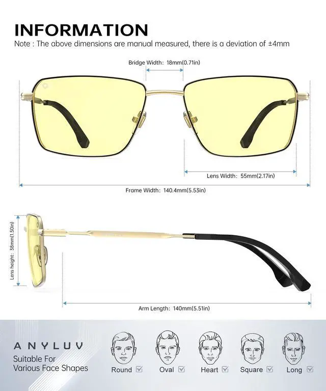 LIGHTWEIGHT & ALL-DAY COMFORT: ANYLUV Blue light glasses Crafted by Metal frames and flexible hinges, These blue light glasses for men provide a snug, pressure-free fit. Soft silicone nose pads prevent slipping, making them ideal for extended screen time at work, gaming marathons, or nighttime driving. ^^