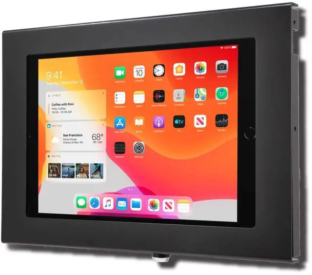 Material: Aluminum, Dimension: 200mm (Height) x 30mm (Depth) x 290mm (Width), Weight: 1.5 lb ^^ Used as Time Clock, POS, Kiosk, Store Display, Trade Show display ^^ Total Screen Access For Full Touch Function, Install In Seconds! One Push Button Lock, Anti-theft security design ^^ Wall Mount Ready! Supports VESA mounting kit with 75mm/100mm standard for both Landscape and Portrait Display Modes