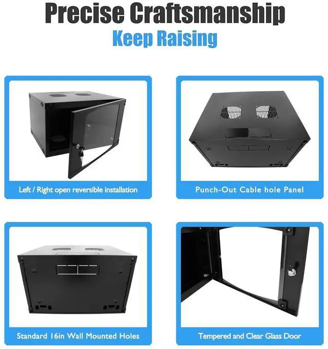 Raising Electronics 9U Server Cabinet Enclosure - Solid, Versatile, and Premium Quality Made; Organize and Secure your Rack Mount Equipment. This premium quality 9U rack mount server cabinet is designed to fit 19" standard equipment. This rack provides your equipment stable supports and the rail depth of 13". The top has a pre-drilled screw holes (4"x4") that is designed for users who want to get a top mounted fan units and save rack space for equipment mounting. This cabinet has Glass door, offers great and clear look to provide in-time observation for your equipment in the rack.