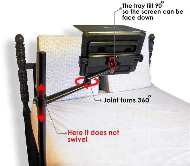 Best tablet/laptop stand for office/entertainment, musician performance, lecture, w atching movie on Netflix ^^ Laptop/Tablet tray can tilt 90 degree up/down so you can place the screen face down to watch it while lying on bed/sofa/recliner ^^ Height adjustable, 360 degree rotate at Arm joint, Arm stretch & fold * best stand for bedside/floor/anywhere ^^ Compatible with Macbook/ Laptop 13 - 17.3", MS Surface Pro, MS Surface Book( 13.5", 15")and 7-13" tablet/smartphone/iPhone ( Compatible with iPad Air IPAD Pro 12.9", MS surface in tablet mode without keyboard) ^^ Height adjustable for best height.
