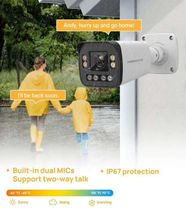 TALKING: This 4K bullet ip camera supports smart motion detection, works with intelligent algorithms to classify targets(Human&Vehicle) that trigger motion detection alarms. It filters out objects that are not target, such as animals and falling leaves, to avoid triggering false alarms. The built-in mic & speaker allows you to hear events and talk to the visitors around the camera anywhere anytime. ^^ OUTDOOR 4K