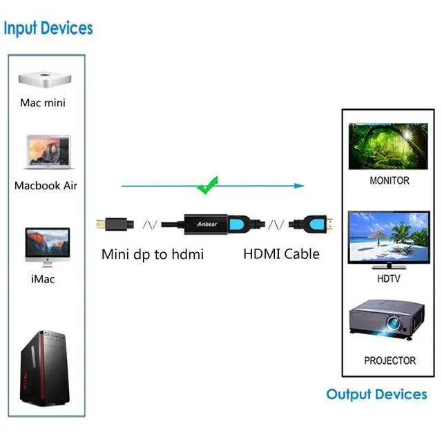 Lightweight and portable adapter for connecting a Mini DisplayPort (Mini DP or mDP) compatible computer to an HDTV, monitor, or projector with HDMI; A separate HDMI cable (sold separately) is required. ^^ Transmits both audio and video from computer or tablet to HDTV display; Supports video resolutions up to 1920 x 1080 and 1080p (Full HD) and flawless audio pass-thru for uncompressed digital 7.1, 5.1 or 2 channels. ^^ Gold-plated connectors resist corrosion, provide rigidity, and improve the signal performance. ^^ Compatible with Apple MacBook, MacBook Pro, MacBook Air, iMac, Mac mini, Mac Pro; Microsoft Surface Pro/Pro 2/Pro 3 (NOT Surface for Windows RT); Lenovo ThinkPad X1 Carbon, X230/X240s, L430/L440/L530/L540, T430/T440/T440s/T440p/T530/540p, W530/W540, Helix; Dell XPS 13/14/15/17, Latitude E7240/E7440, Precision M3800; Alienware 14/17/18; Acer Aspire R7/S7/V5/V7; Intel NUC; Asus Zenbook; HP Envy 14/17; Google Chromebook Pixel; Cyberpower Zeusbook Edge X6; Toshiba Satellite Pro S500, Tecra M11/A11.