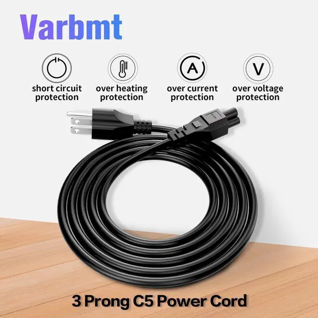 Rated Voltage&Amps: 10A 125V Power Cord (Also made for 7A 125V 120V), Connector: IEC-60320 (IEC320) C5 to NEMA 5-15P, Gauge: 18AWG. Great Choice for replacing your damaged, overused or misplaced original power cord. ^^ Universal 3 Prong AC Power CordVarbmt 10Feet (3m) Laptop Power Cord is made for HP Pavilion, Envy Touchsmart Sleekbook, Elitebook, Folio, Probook, ZBook, Spectre x360, Split x2, HP Stream, HP Chromebook, HP Compaq. made for ASUS VivoBook, Zenbook, Transformer Book Flip, Chromebook, ROG Gaming Notebooks. made for Dell Inspiron, Latitude, Vostro, AlienWare, Chromebook, XPS. made for Acer Aspire, Timeline Ultra, Switch, TravelMate, Chromebook Laptop Power Cable. ^^ Widely Compatible 3-Slot Mickey Mous Power CordVarbmt C5 Power Cord Replacement for LG LED LCD Smart 1080p HDTV 32LB580B 32LB5600 42LN5400 42LB5600 450LB5900 50LN5400 50LN5750 55LN5100 55LB6100 55GA6400 60LN5600 60LN5700 60LN5710 60LN5750 TV Power Cord. made for HP 27f monitor power cord, Philips PC monitor. Ideal replacement power cord for most Laptop / Notebook / Personal Computer / TV / Monitor / Printer which needs a 3 prong Mickey Mouse Plug. ^^ Safe and Durable 3 Prong AC Power Cable Varbmt 10FT Laptop Power Supply Cable, engineered with safety focused construction, is made from 100% pure copper material and environmental-friendly PVC material, which could provides protection against over heating and over loading for your devices.
