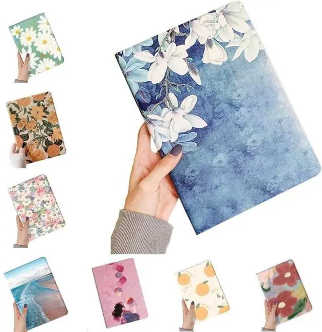 Floral iPad Case Flower Pattern Cute Slim Leather Folio Smart Cover with Pencil Holder
