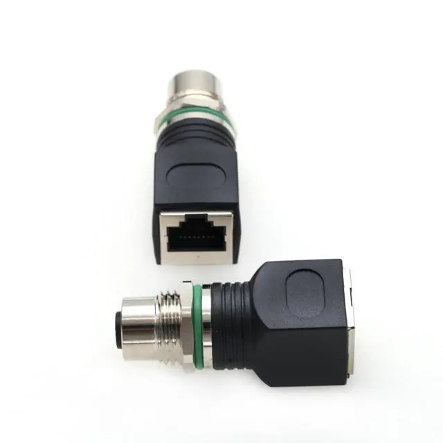 • M12 A or D Code to RJ45 Bulkhead networks Adapter, Cat5e, Cat5, Cat6, supports 10Gbps high-speed Ethernet transmission, right angled design avoids bending of cable.