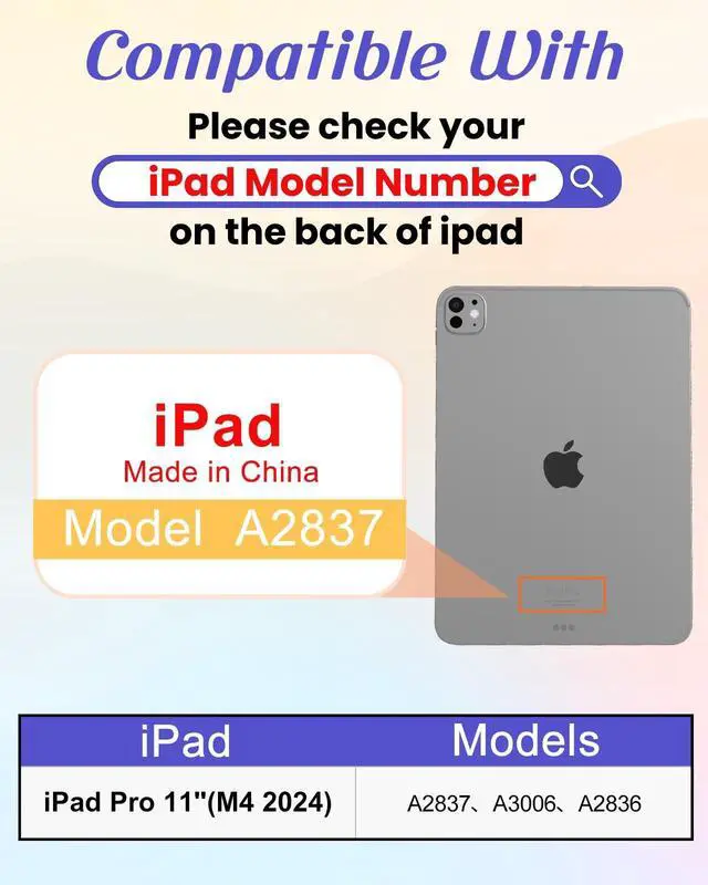 Compatibility: This case is only compatible with iPad Pro 11 Inch Case M4 2024 5th Generation.