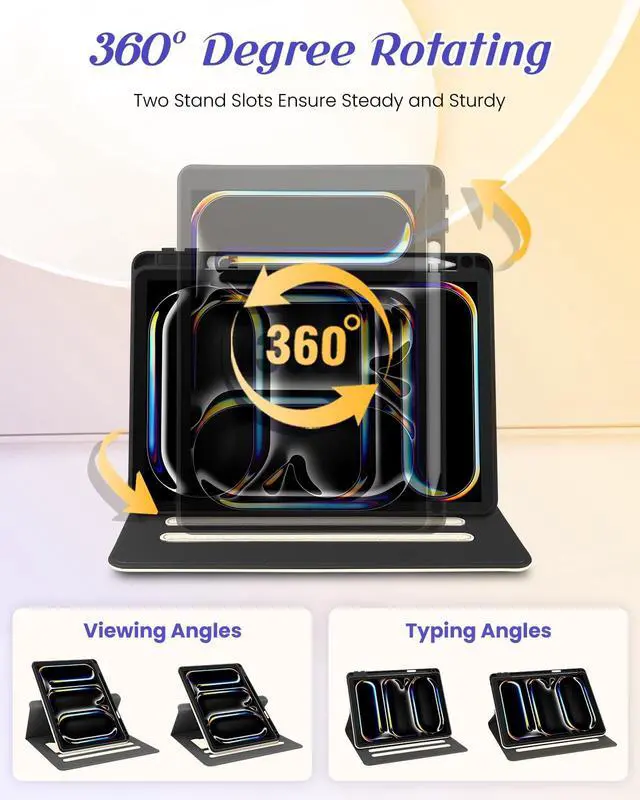 Rotating Stand: This for iPad Pro 11 inch case M4 2024 with an functional rotating stand design, supporting your devices to switch between landscape and portrait orientations. While 2 anti-slip strip design allow for multiple horizontal stand angles for comfortable viewing or typing ^^