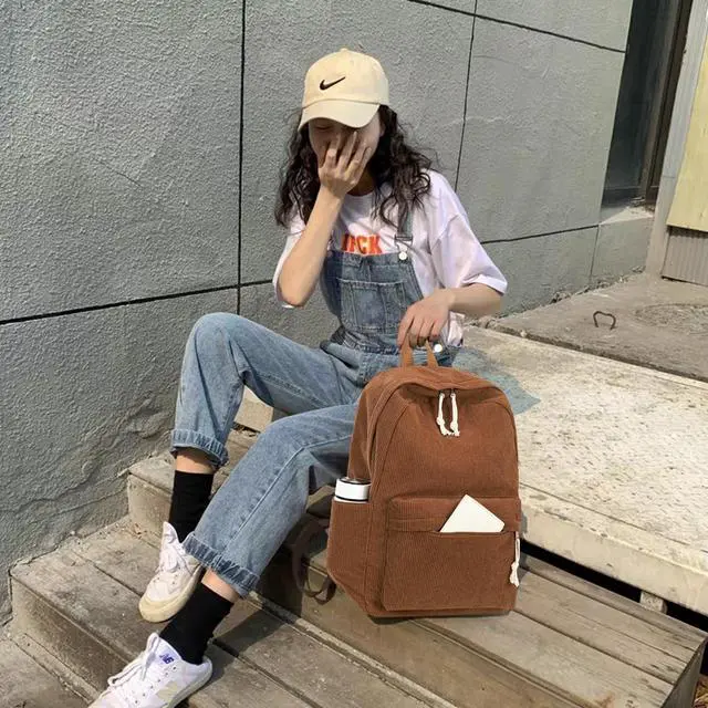 Perfect size large corduroy backpack: 17*12*6inch (H x L x W), fits for 15.6 inch laptop and big folders.