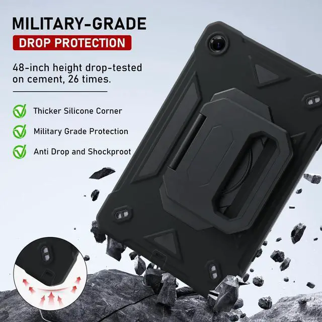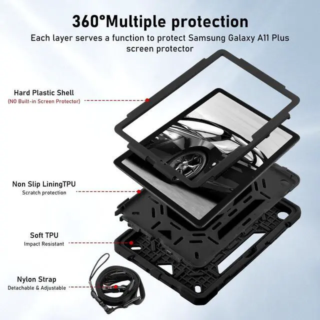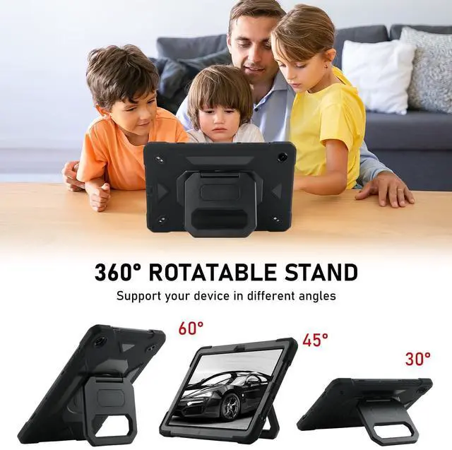 360Rotating/Foldable Kickstand Built-in Pencil holderThe Protective Samsung Galaxy Tab A9 Plus Case built-in rotating handle Kickstand on the back, flexible in Vertical & Horizontal any other angles ideal for watching video, reading or teaching, maximinzely free your hand. Built-in S-pen holder. Prevents pens from going nowhere, getting lost, etc .Also offers hand hold and hung on wall using by handle function,allow you use or carry much easier,perfect for a variety of people and occasions.