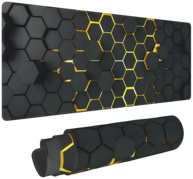Desk Mat Black Yellow Large Mouse Pad Gaming Mousepad Extended XL Desk Pad Keyboard Pad 31.5 x 12 inch Laptop Computer Mouse Keyboard Mat for Office Decor