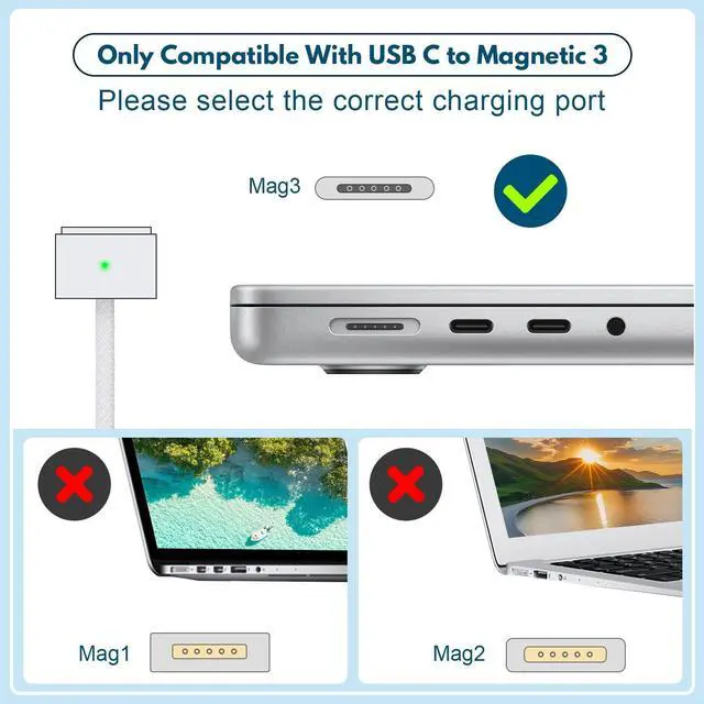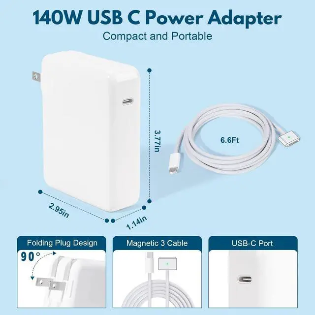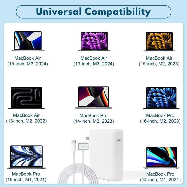 ^^ Universal Compatibility: laptopchargers are compatible with laptop Mac book Pro 16 15 14 13 inch (2024, 2023, 2022, 2021, ), M1, M2, M3, laptop Air, a2681, a2941, a3113, a2442, a2992, a2918, a2485, a2458, a2452, a2780, laptops and iPads, and All USB C devices. The smart output supports 140W, 118W, 96W, 87W, 70W, 67W, 65W, 61W, 45W, 30W, 20W, while providing highercharging performance. ^^ 2M / 6.6FT