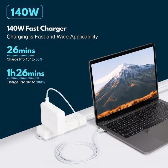 Fast Charger: The 140W USB-C power adapter provides up to 99% high charging efficiency with stable output current, allowing you to meet the charging needs of multiple devices including laptops, tablets and mobile phones at the fastest speed in any scene and any place.