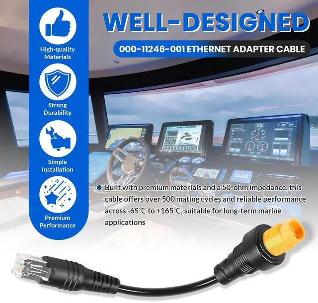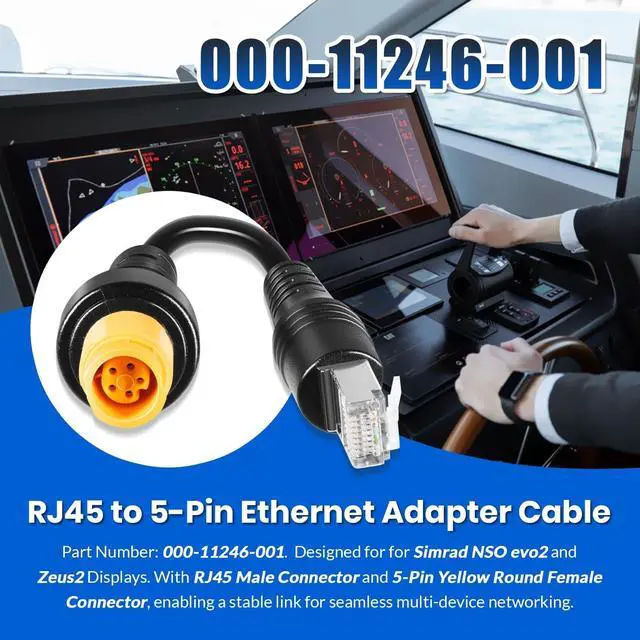 With RJ45 Male Connector and 5-Pin Yellow Round Female Connector, enabling a stable link for seamless multi-device networking. It supports theoretical Ethernet speeds up to 1000Mbps, ideal for radar, sonar, charting, and other high-bandwidth marine devices, ensuring faster data updates and smoother display output
