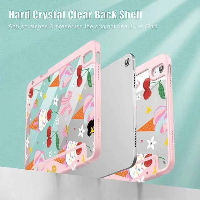 • Clear Cover: Hardshell back cover with flexible TPU bumper protects your iPad from shocks, drops and impacts. Soft microfiber interior front prevents your tablet from scratched. And the crystal clear back cover will proudly show off the Apple icon.