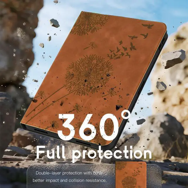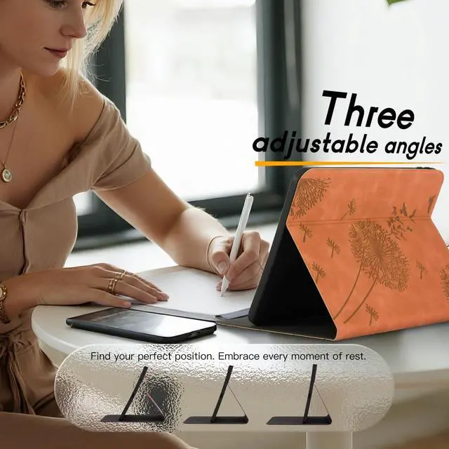 Model: A2757 A2777 A3162 A2696), not fit any other version, please check your device model before purchase. ^^ Dandelions, Birds, Freedom Embodying the spirit of nature, this ipad case 10th generation features an elegant embossed design with dandelions and a flock of soaring birds. It celebrates freedom and serenity while striking a perfect balance between artistic expression and refined craftsmanship. Through this design, we reflect our care for wildlife, attention to climate change, and dedication to environmental protection. ^^ Multi Layers ProtectionsThe outer layer is made of PU synthetic leather, it maximally simulates the texture of leather, keeping the comfortable hand-feeling of real fur and a better Heat dissipation effect. The inner layer uses wear-resistant TPU to protect your tab from all the scratches and accidental drops. Once the magnetic buckle closes up, this ipad 11 inch case is an indestructible castle ^^ Whole Plate cutting & Multi viewing AnglesThe a16 ipad case uses a whole plate cutting technique, compared to those cases with a triple-folding cover, our case as a whole, is not only richer in materials but also has a greater quake-resistant attribute.