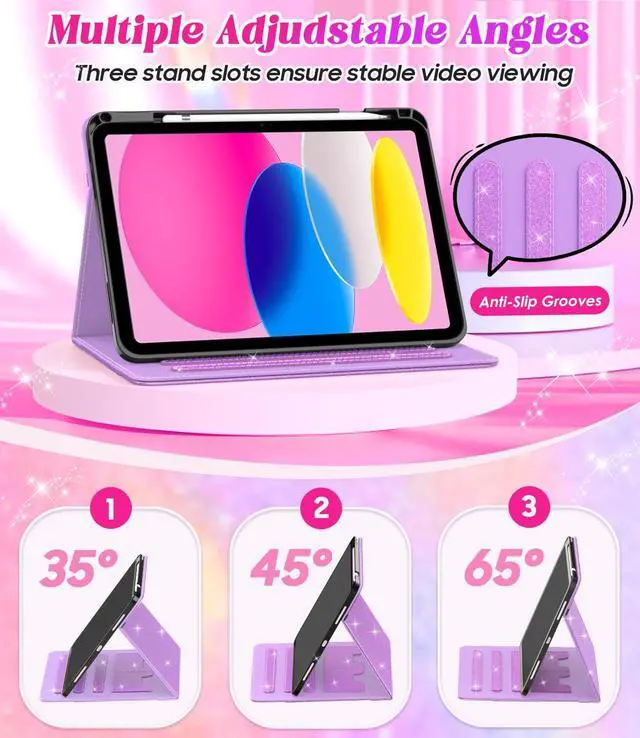 Adjustable Angle: The Zonefoker ipad 11th/10th gen case has three slots with upgraded anti-slip material; you can easily adjust it to different angle positions to reach your most comfortable viewing and typing angles ^^