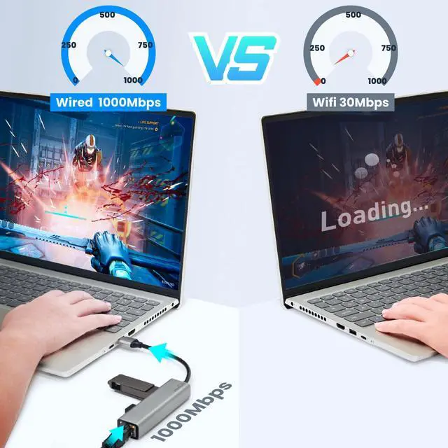 Superfast Gigabit Ethernet: The USB Hub with Ethernet adapter delivers stable data transfer speeds up to 1Gbps; and backward compatible with 100Mbps/10Mbps networks. This usb hub with ethernet port supports uninterrupted large downloads at maximum speed.