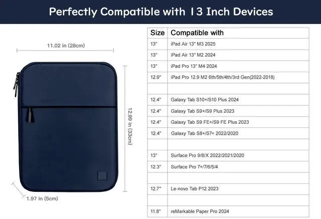 COMPATIBLE DEVICE - Our Dadanism tablet sleeve bag is fit for most 13 inch tablets, such as iPad Pro 13" M4 2024, iPad Air 13" M3 M2 2025 2024, iPad Pro 12.9 M2 6th 5th 4th 3rd Gen(2022-2018); Surface Pro 9 8 X 13", Surface Pro 7+ 7 6 5 4 12.3"; Samsung Galaxy Tab S10+ Plus S9 FE+ S9+ Plus S8+ S7 FE S7+ 12.4"; reMarkable Paper Pro 11.8"; and other 13 inch device.