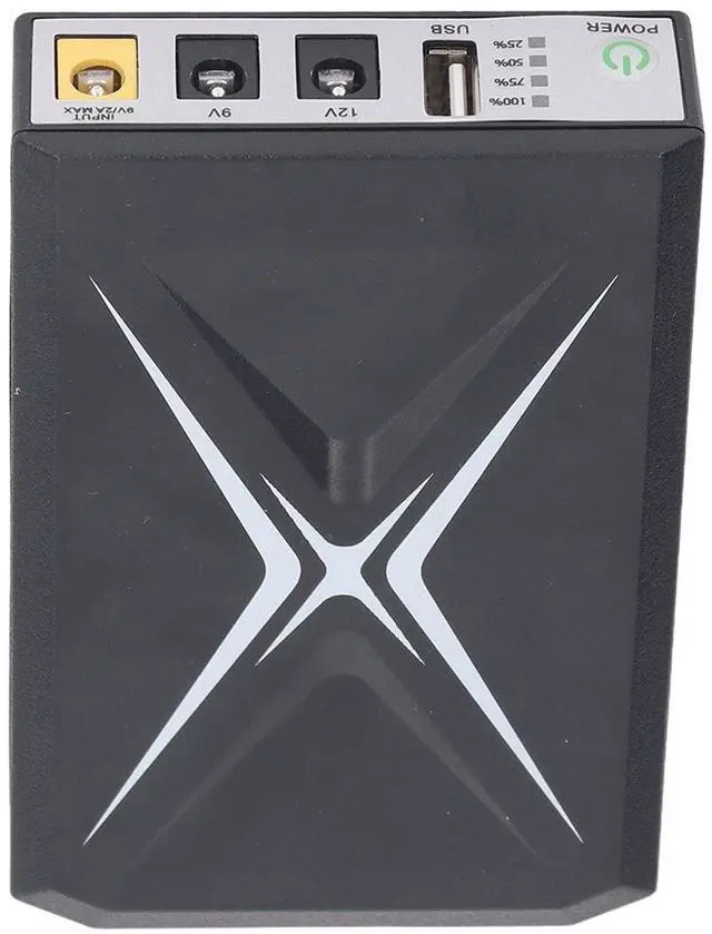 Instructions: 1. Hold down the power button for 23 seconds to power on the UPS. 2. Fully the UPS before connecting. When connecting DC, the power indicator blinks. It is charging. When charging, the power indicator will indicate battery capacity from 25100 percent. 100 percent fully charged. After fully charging, disconnect the DC power adapter. 3. Once the battery backup mode is activated. When the battery run out, the power indicator will be turned off from 100 percent to 25% respectively. When the indicator to 25%, it indicate that the battery is low, and you need to press the power button for 23 seconds to turn off the UPS.