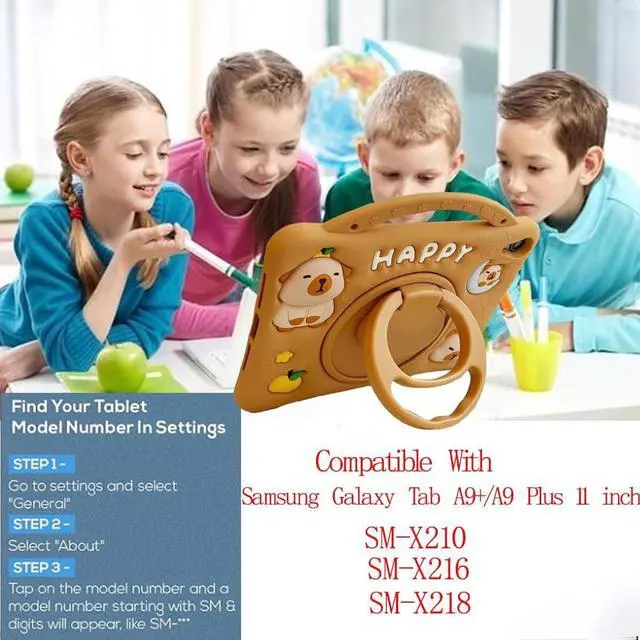CompatibleThe 3D Cute Cartoon Capybara Girls Women Soft Silicone Case Compatible with Samsung Galaxy Tab A9+/A9 Plus 11 inch 2023 SM-X210/X216/X218. DO NOT fits for any other devices. ^^ MaterialThe 3D Cute Cartoon Capybara Girls Women Soft Silicone Case is Made of Silicone. soft and flexible. safe and protective. it can be easy cleaned just with water when it is dirty. ^^ CharacteristicThe 3D Cute Cartoon Capybara Girls Women Soft Silicone Case Protects your Tablet from unnecessary bumps, dents, and scratches. Perfect combination soft and comfortable without transformed and also anti-shock and fall.