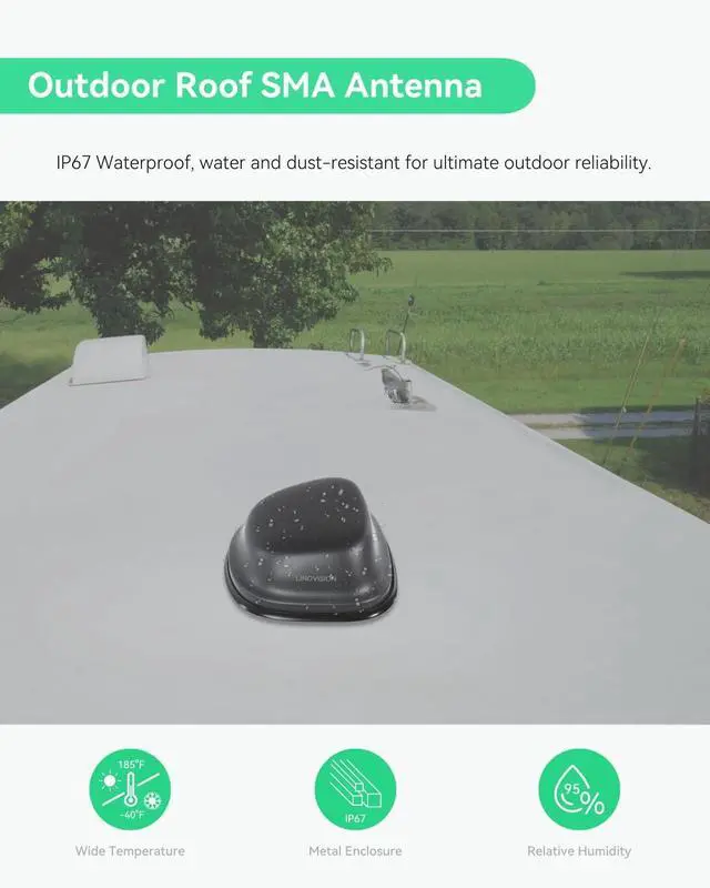 COMBO 7-in-1 ANTENNA - 4x 5G LTE MIMO, 2x Wi-Fi and 1x GNSS Antenna; Screw mount; Cable length 3 meters (10ft). ^^ IP67 WATERPROOF- Outdoor Roof Type, water and dust-resistant for ultimate outdoor reliability. ^^ GLOBAL 5G LTE RANGE - Supports 4x4 MIMO; Works in most countries in the world with frequency range: 698~960MHz/ 1710~2690MHz/ 2900~3800MHz; 4x SMA Male Connector. ^^ DUAL BAND Wi-Fi - Supports 2x2 MIMO;
