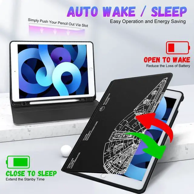 ^^ Auto Sleep/Wake: Built-in magnetic strip, this for ipad cover 9th generation, for 7th generation ipad case, for 8th generation ipad case with the smart funtion of auto sleep/wake, no wasting the power energy and extend your iPad standby time.