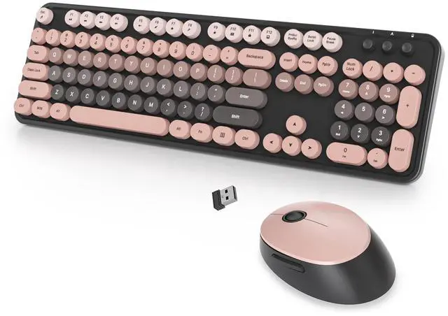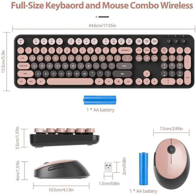 • 104-Key Full-Size Wireless Keyboard and Mouse: This cute retro typewriter-style wireless keyboard includes a number pad for easier and more comfortable typing, perfect for daily office use.