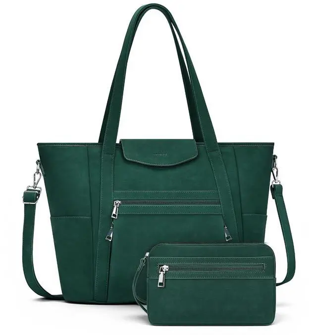 Handbag size: 9.7"L * 6.4"H. The comfortable size & hidden back straps and built-in buttons can transform a handbag into a computer bag. There may be slight errors due to different measurement methods ^^ Water-Resistant & Easy to Maintain- This leather laptop bag is made of soft faux leather, which is stylish and elegant. The smooth zip doesn't get stuck. Wider strap design which is Comfortable and does not tighten the shoulder, ensuring comfort throughout the day. The design of the luggage strap allows the laptop bag to be placed on the suitcase to free up hands, and it can be used as a travel laptop backpack carry-on the plane and a backpack for short trips lasting 2-3 days ^^ Ideal for Work, Daily use, Travel & Gifting- Convertible style and function, this 4 IN 1 laptop bag is perfect for work, travel, or daily uses. The simple, retro and exquisite style is deeply loved by mothers, lovers and other women. It is a great gift for birthdays, Mother's Day or graduation, and an ideal choice for those who value both fashion and practicality