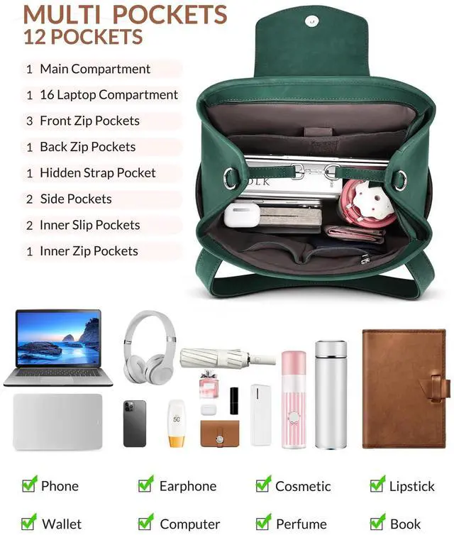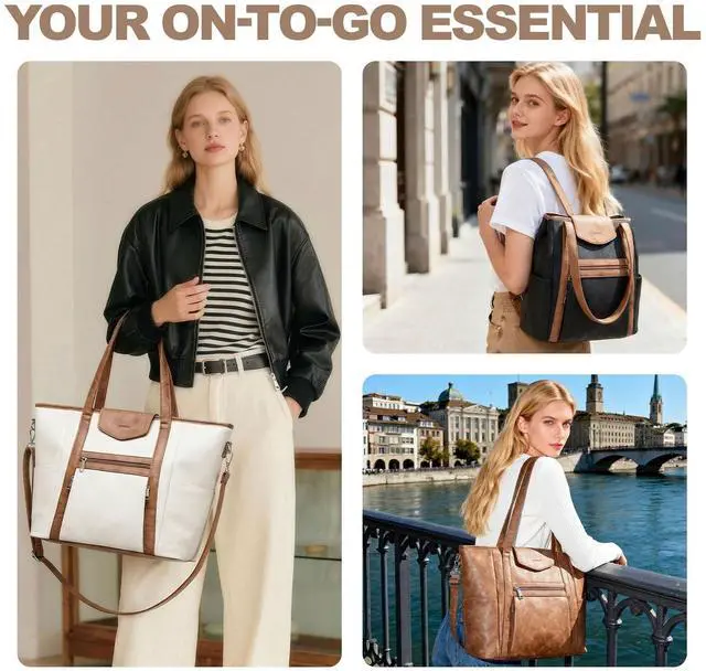 As a Laptop Backpack or a Laptop Tote Bag- This designer laptop bag is a stylish and practical laptop bag for women. The hidden back pack strap is designed to convert the laptop bag into a laptop backpack, and the detachable shoulder strap can be converted into a shoulder handbag. The various carrying methods such as handbag, back pack, shoulder purse and tote bag are suitable for everyday use ^^ Multi-pocket & Large-capacity, Easy Storage for Everything- This womens laptop bag has 12 pockets, including 1 main compartment, 1 built-in laptop pocket (which can hold a laptop no larger than 16.5 inches, effectively protecting the device from collision), 4 external zip pockets, 1 hidden back strap pocket, 2 side pockets and 3 inner pockets.