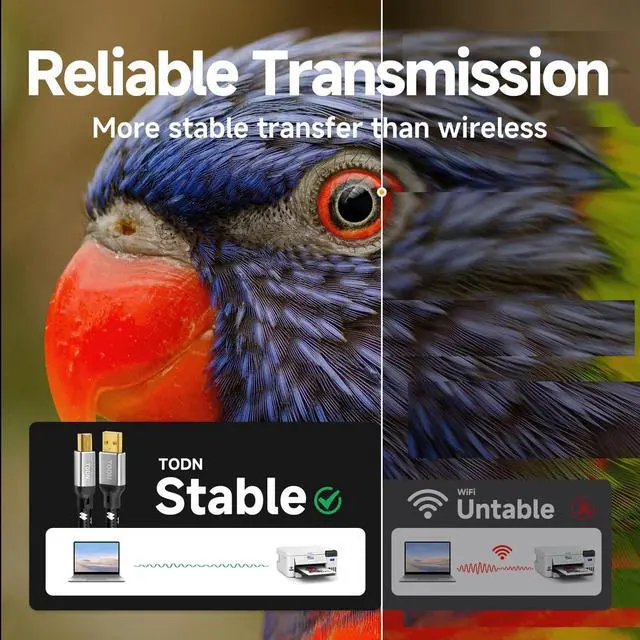 Stronger & More Stable: To enhance the signal transmission of audiophile USB printer cable, we've designed a tinned copper braided shielding around the conductors to reduce EMI, RFI, and crosstalk. This shielded USB 2.0 type A to B cable delivers pure musical enjoyment without hum or static. Making this USB 2.0 DAC cable the ideal choice for audiophiles ^^