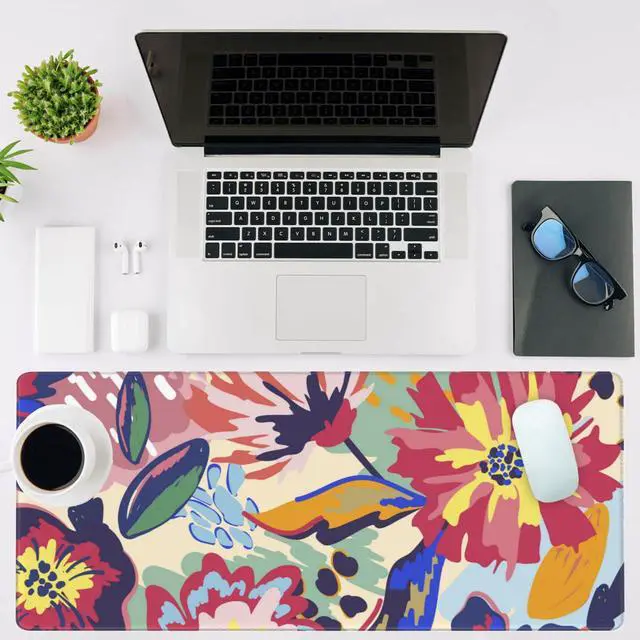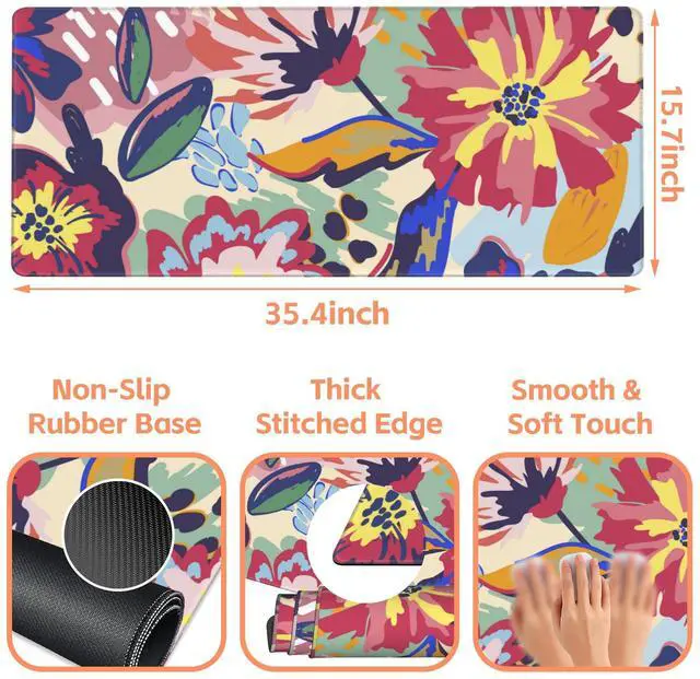 NIYLYNSYN Abstract Floral Gaming Mouse Pad,Large Non-Slip Thick Stitched Edge Mouse Mat for Home Office Gaming Keyboard Desk Pad (35.4 x 15.7 Inches)