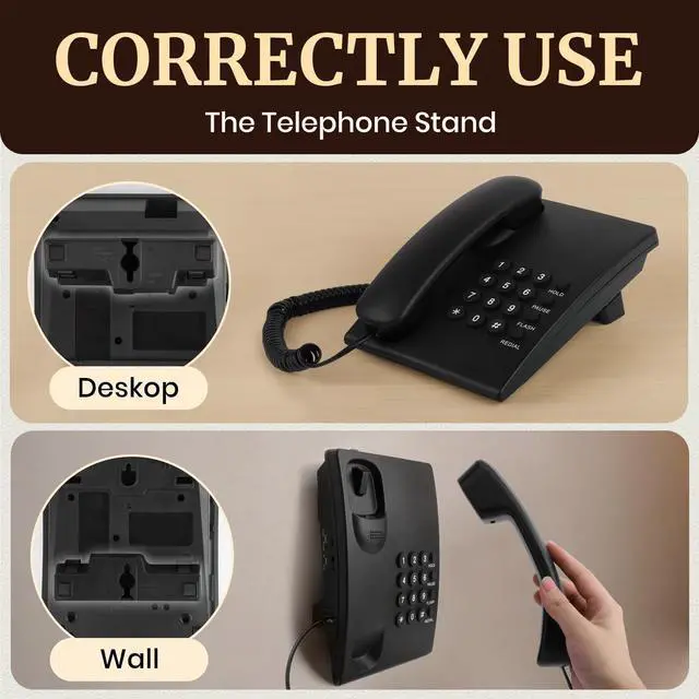 [Telephone with Stand] The stand allows the phone to tilt, making it easier for users to answer and dial calls. Single-line corded phone for desk or wall mounting. We always keep the highest quality performance and functions in mind when designing and testing wall phones to ensure top-notch reliability