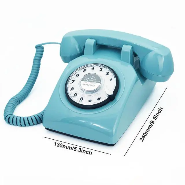 TelPal Retro Single Line Corded Desk Telephone Classic Vintage Rotary Dial Hands Free Landline Phone for Home/Office/Hotel, Antique Phones for Seniors Gift (Blue)