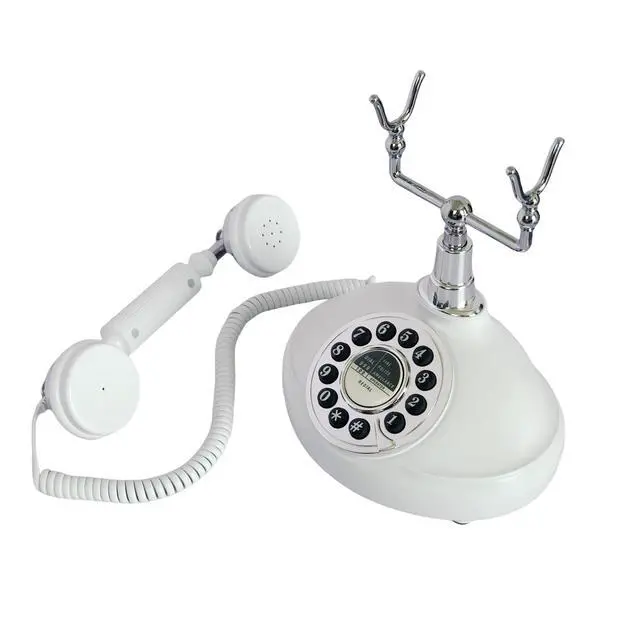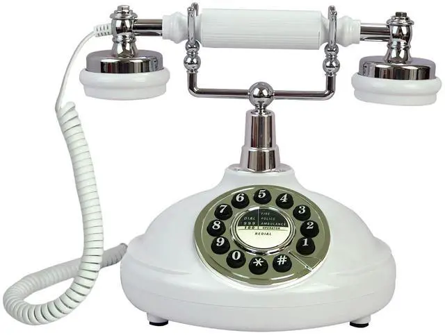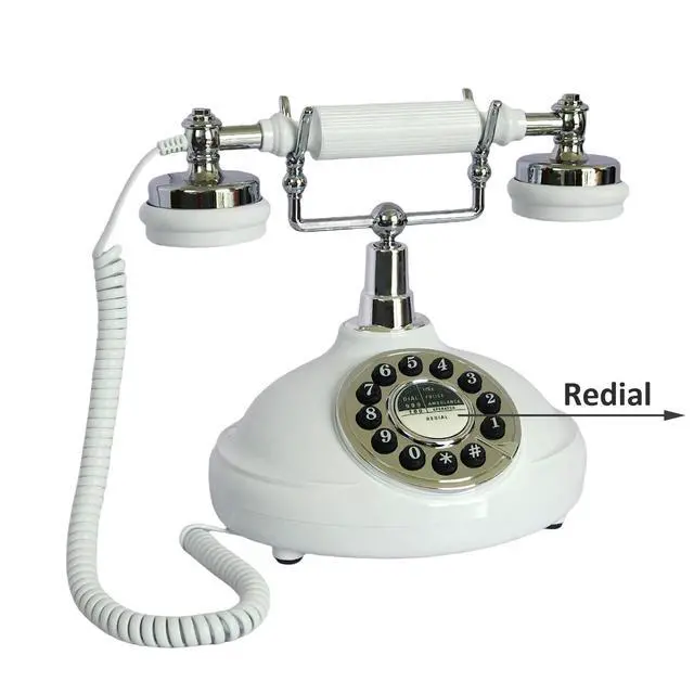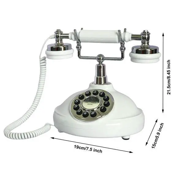 White Antique Classic Vintage Corded Landline Phone Home School Movie DecorOld Fashioned Push Dial StyleThis is a retro-styled 1980s European-style telephone. The high-quality microphone and speaker in the classical receiver handset assure excellent voice quality. This high quality retro telephone is ideal for home, office, hotel, shops or other places. It is a pretty real phone that can truely make and answer calls. Not only practical but also can as an ancient decoration. Instruction1. Put the telephone in flat area, keep it stable. 2. Connect the cable correctly according to the manual.
