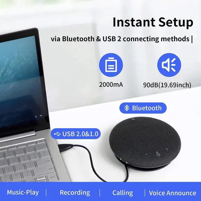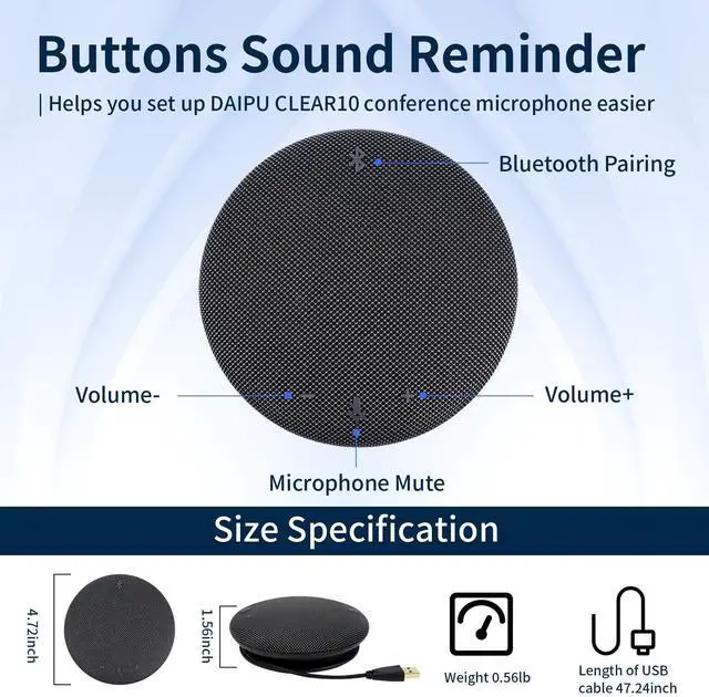 Compatible: The daipu bluetooth conference speaker is suitable for business/home video conference, online teaching etc. and can be used for Zoom, Skype, GoToMeeting etc. and is compatible with Windows 7/8/10, Mac OSX, Android, iOS etc