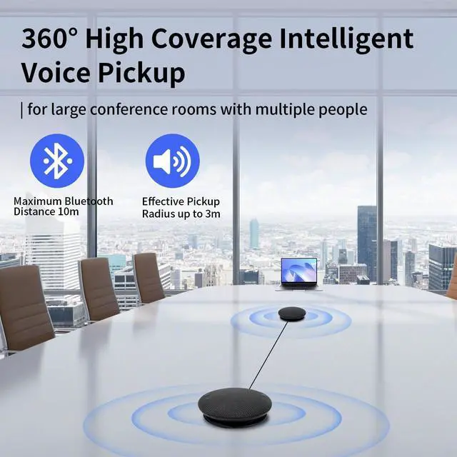 Distance 32.8 ft: The daipu bluetooth conference speaker and microphone adopts 360 ai voice pickup, and effective radius can be up to 9.84 ft, volume can be up to 90dB, max bluetooth communication distance is up to 32.81 ft, for large conference room ^^